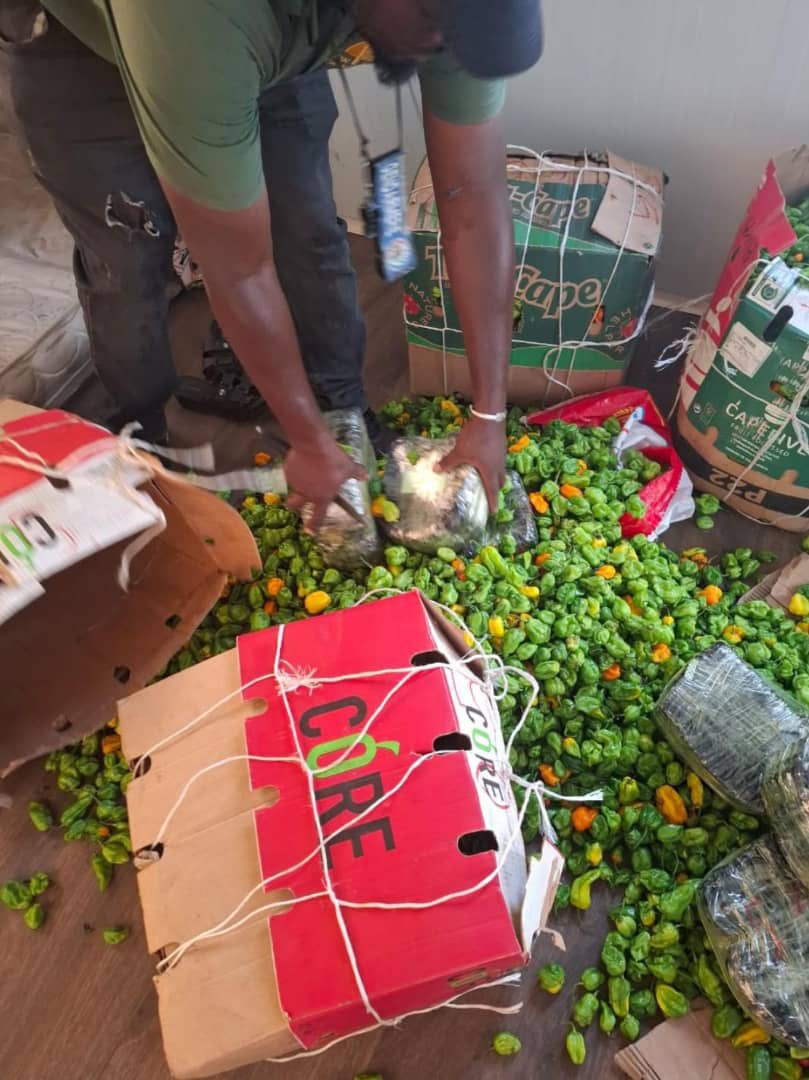 Les faits se sont déroulés aux environs de 22h45, lorsqu’un car de transport en commun a été immobilisé pour vérification. Au cours de la fouille du véhicule, l’attention des agents a été attirée par plusieurs cartons contenant du piment frais, dont la disposition paraissait suspecte.
